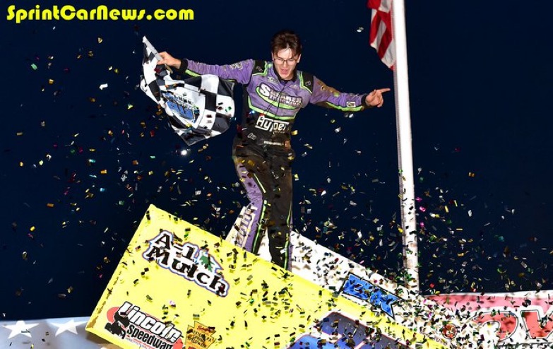 Steven Snyder, Jr celebrates his first career ‘410’ sprint car win (Rick Rarer photo)